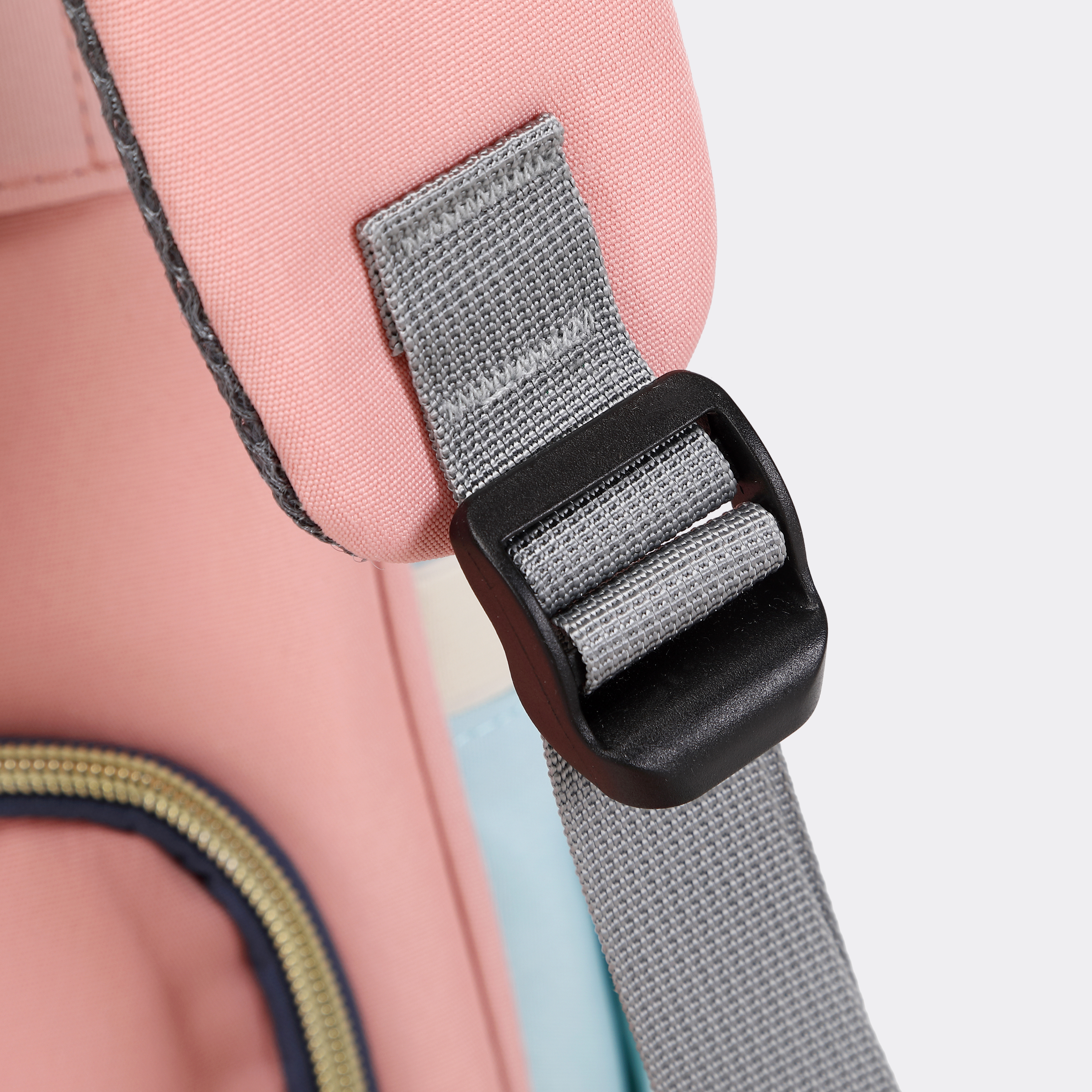 • Additionally, the design includes a back zippered pocket to keep valuables secure and a special strap for attaching the bag to a stroller, making it ideal for moms on the go.