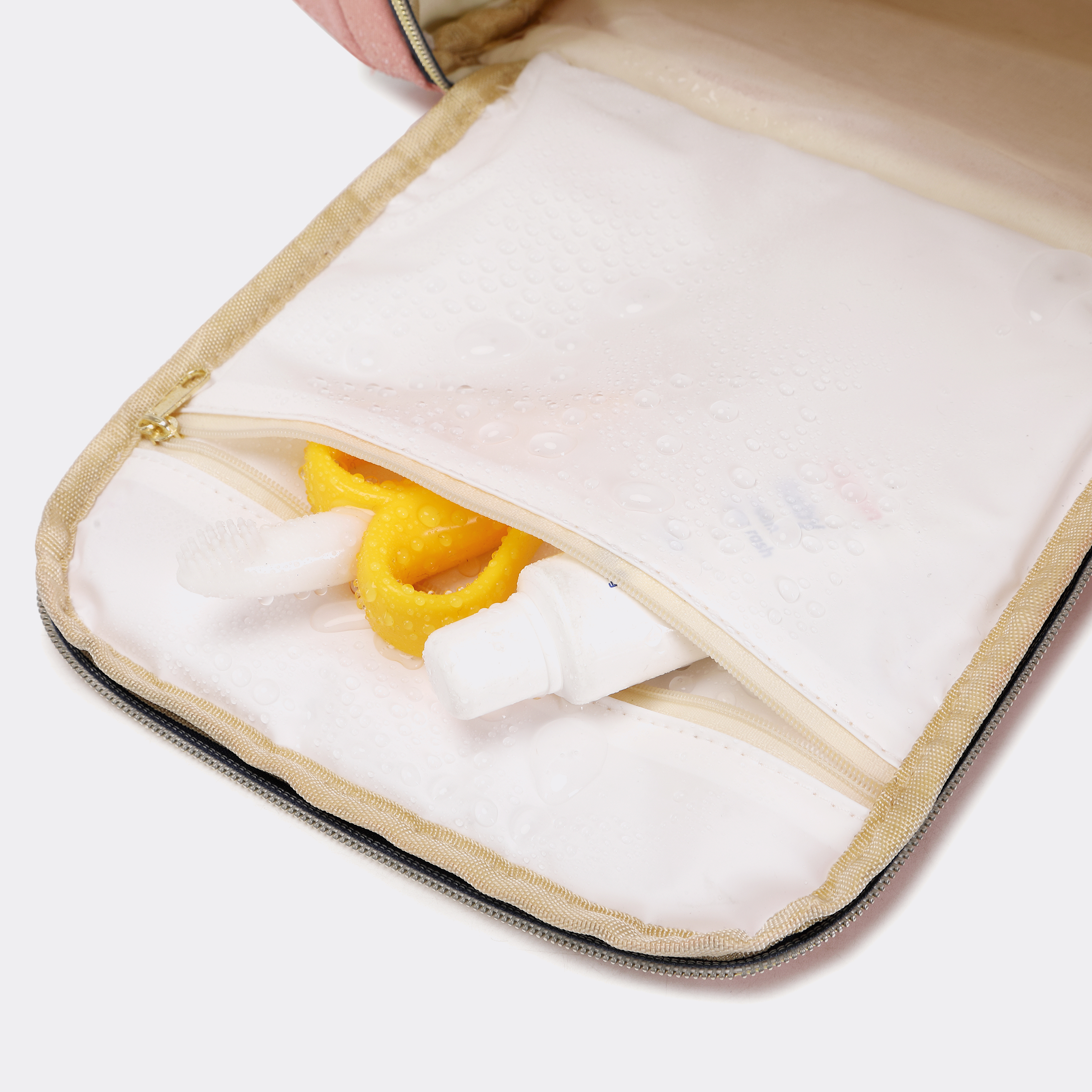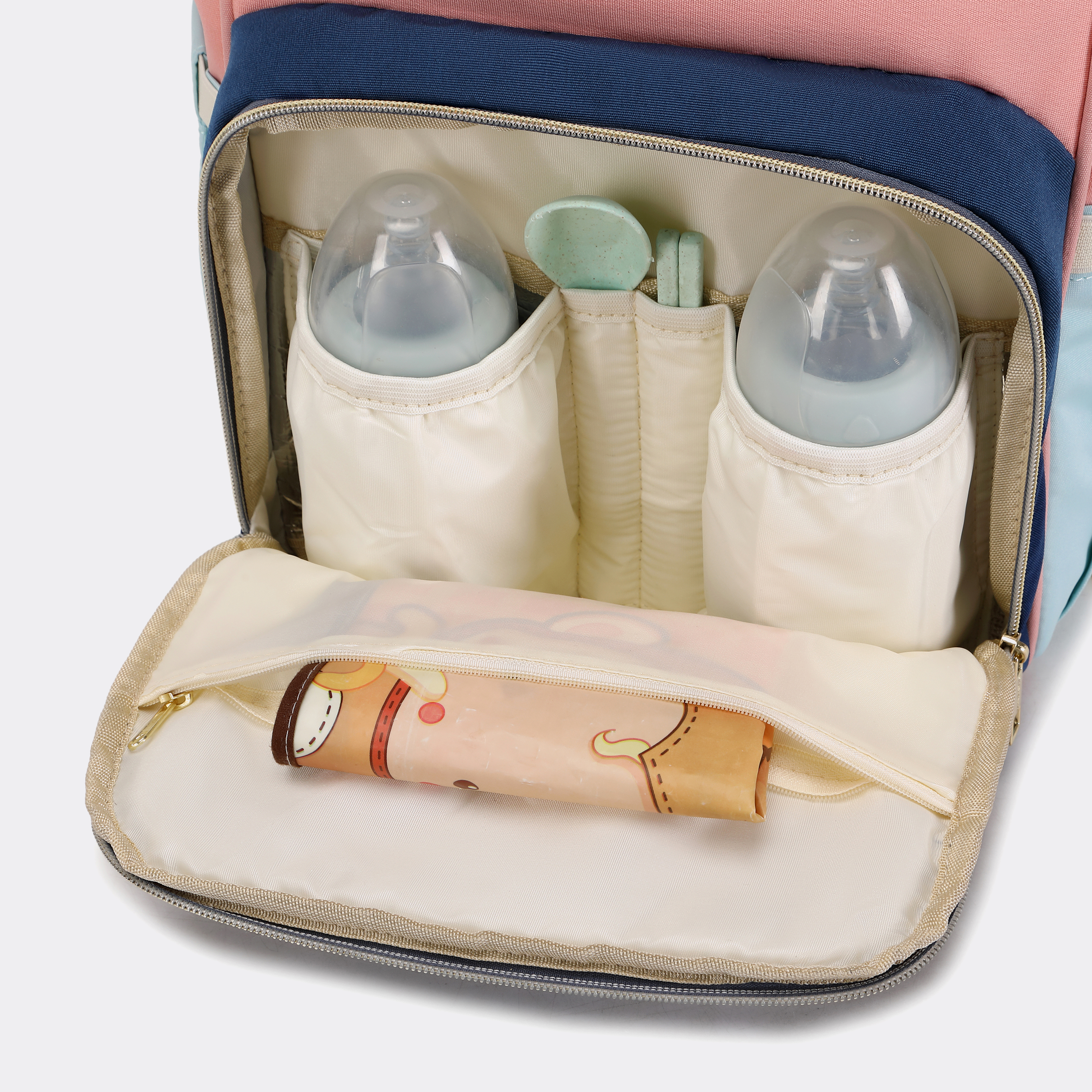 • Side pockets are ideal for baby bottles or water bottles, while a front zippered pocket ensures quick access to essentials like tissues or keys.